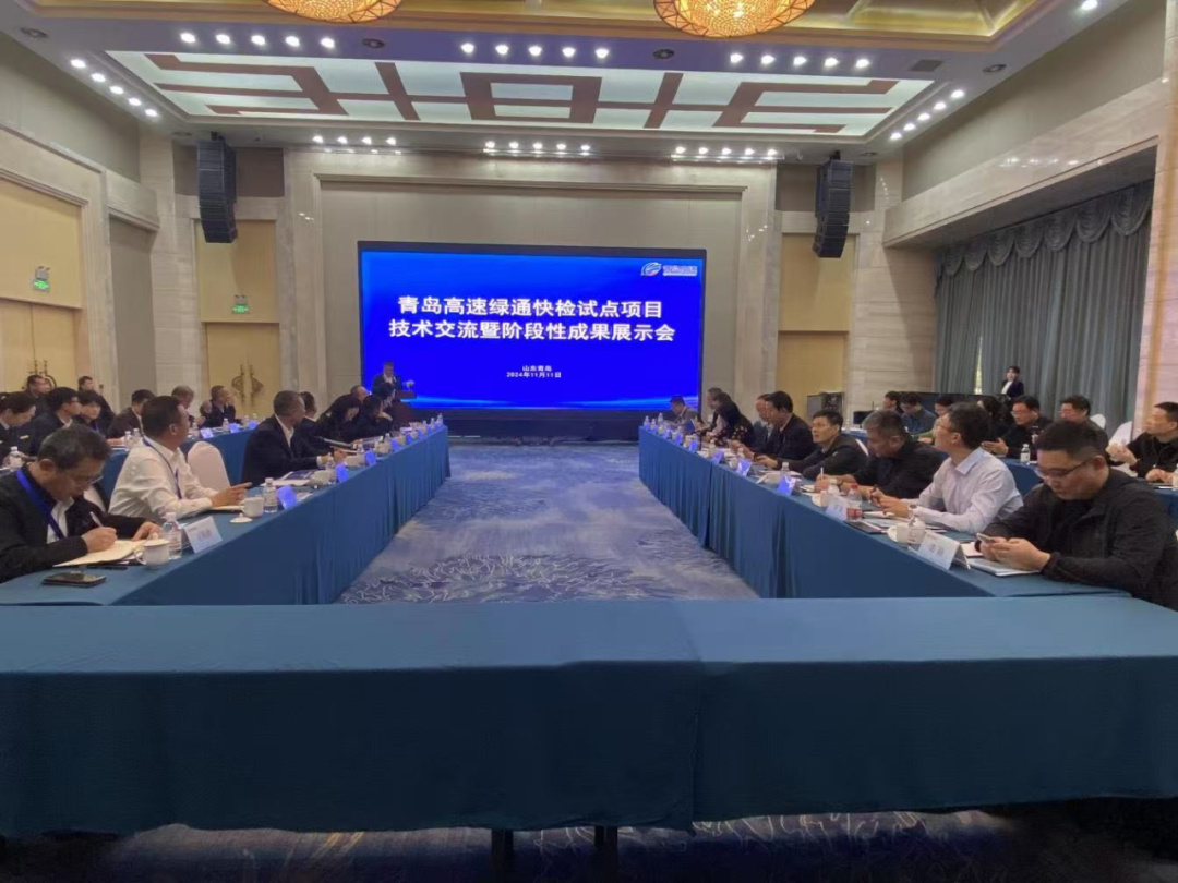 11月11日,由青岛城投集团旗下青岛高速集团主办的全省首个高速公路绿通快检试点项目技术交流暨阶段性成果展示会议在青岛顺利召开,标志着山东省首个高速公路绿通快检试点项目在青岛落地。中国交通运输协会交旅融合发展分会会长、交通运输部综合规划司原副司长于胜英主持会议,交通运输部机关服务局原工会主席周宝义出席会议。交通运输部路网监测与应急处置中心、环境保护中心、省交通运输厅相关领导,市交通运输局、青岛高速集团等单位相关负责同志共计30余人参加会议。