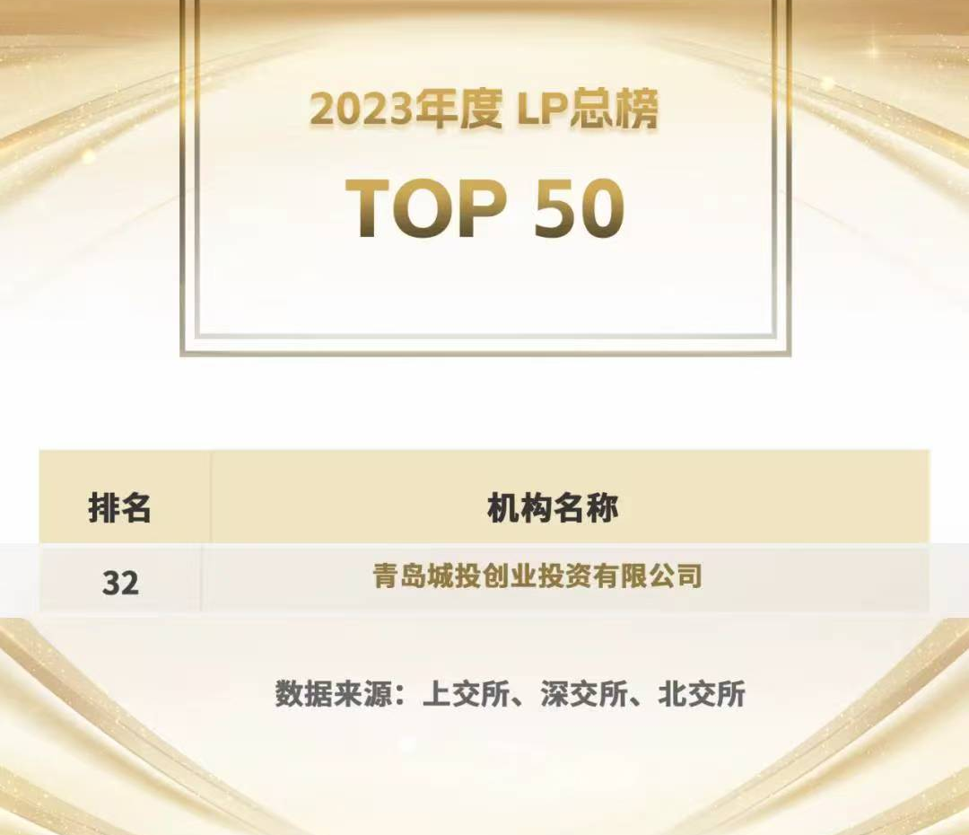 创投公司被国内母基金权威研究机构“LP投顾”评为2023年LP退出榜第32名、国资LP退出榜第27名。