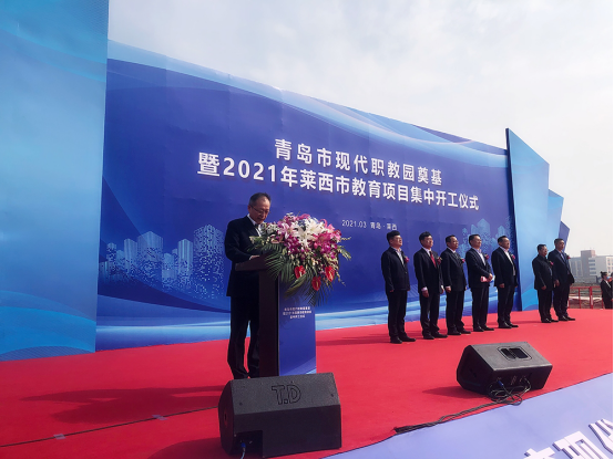 3月26日,青岛市现代职教园奠基仪式在莱西姜山产业新城举行。青岛市教育局局长刘鹏照,莱西市委副书记、市长王清源,集团党委委员、副总经理于志军,以及山东外贸职业学院、莱西市南部片区指挥部、莱西市教育体育局、莱西平度公司等单位相关领导参加奠基仪式。