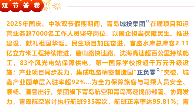 935架次,506万辆次,7000余人在岗……青岛城投双节答卷来了!