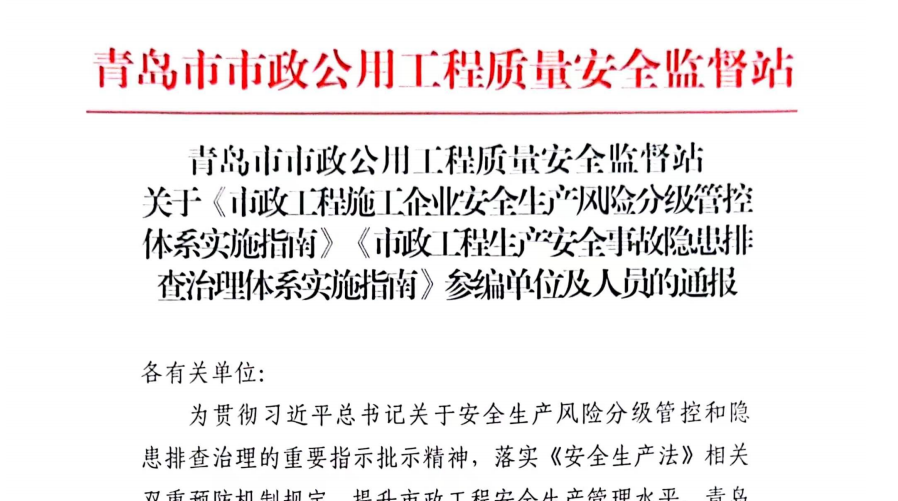 “标准决定质量,有什么样的标准就有什么样的质量,只有高标准才有高质量。”青岛城投集团深入学习贯彻习近平总书记leyu-乐鱼(中国)官方网站_leyu.com安全生产、标准化工作的重要论述精神,近日,城投集团与青岛市市政工程质量安全监督站共同主编两项省级行业团体标准《市政工程安全事故隐患排查治理体系实施指南》(以下简称《隐患排查指南》)《市政工程施工企业安全生产风险分级管控体系实施指南》(以下简称《风险管控指南》),已正式发布实施。(图为两