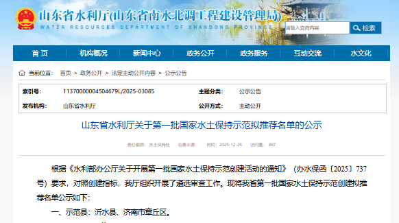 青岛官路水库工程被推荐为第一批国家水土保持示范创建项目
